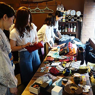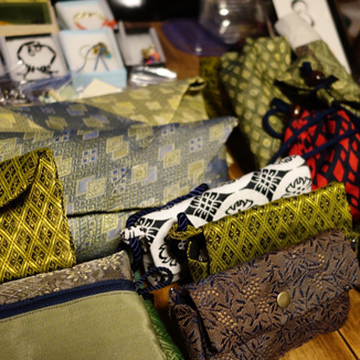 「畳 フチコ」さん出展の畳のふちを使った小物も多数。和の模様が素敵です。