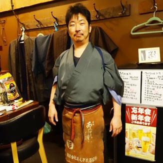 今回の会場「渋谷 焼き鳥みなと」マスターのアツシさん。厨房でもノリノリでした。