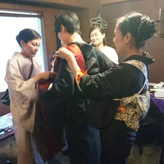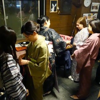 初めて和装する方には着付けのお手伝いもいたしますので、気軽に参加いただけています。